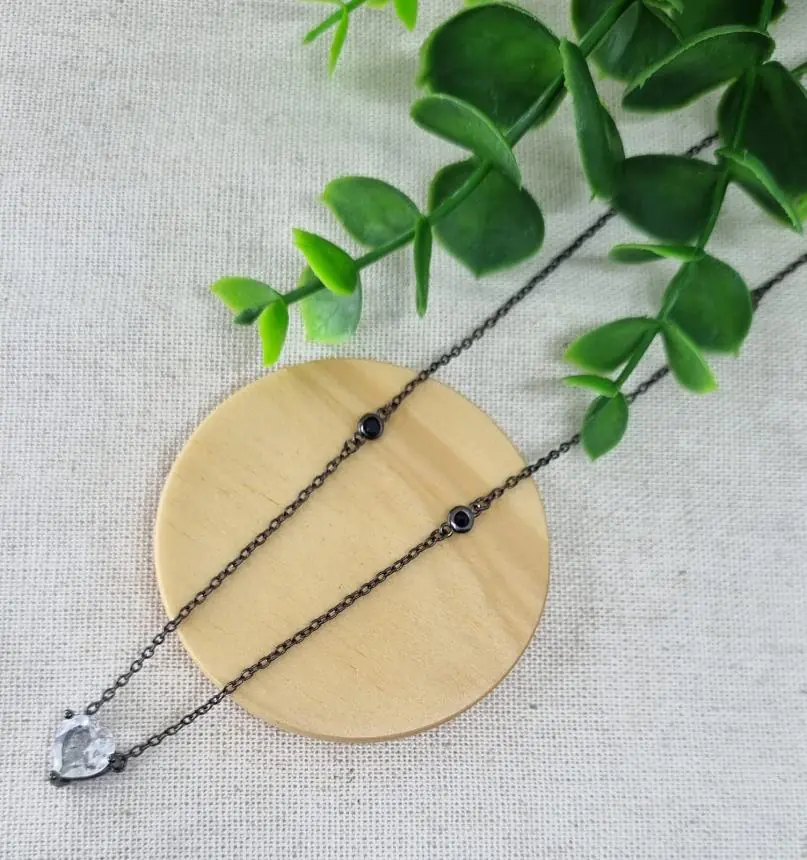 Conjunto sofisticado composto por colar e brinco em prata 925 com banho de ródio preto. O colar possui 45cm de comprimento + 5cm de extensor, com pingente de coração em zircônia tradicional medindo 1cm. A corrente é enriquecida com quatro pontos de luz em zircônia black, proporcionando brilho discreto e elegante.